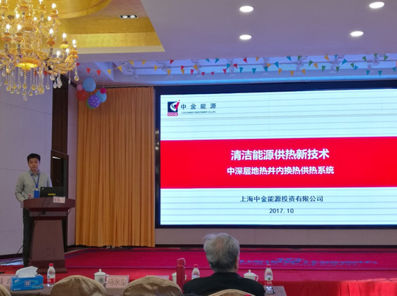 此次會議由中國地質(zhì)學(xué)會主辦,中國地質(zhì)學(xué)會地?zé)釋I(yè)委員會、河北省煤田地質(zhì)局第二地質(zhì)隊(duì)、中國地質(zhì)科學(xué)院水文地質(zhì)環(huán)境地質(zhì)研究所等單位承辦。會上,中國工程院院士盧耀如、中國科學(xué)院院士汪集旸、中國工程院院士曹耀峰等地?zé)嵝袠I(yè)大咖作了專題報告。其中,上海中金能源投資有限公司清潔能源事業(yè)部總經(jīng)理陳永平被邀請作了題為《清潔能源供熱新技術(shù)——中深層地?zé)峋畠?nèi)換熱供熱系統(tǒng)》的報告。