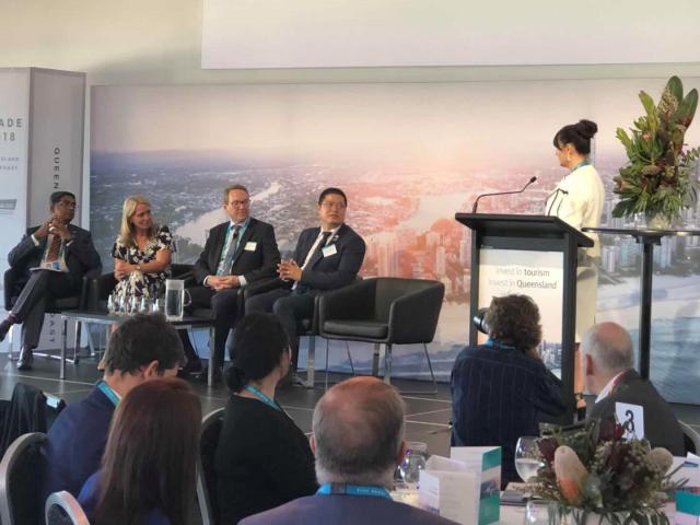 夢(mèng)島酒店總經(jīng)理唐繼堯受邀參加開幕活動(dòng)的訪談,與昆士蘭州州長白樂琪女士、昆士蘭州創(chuàng)新及旅游發(fā)展部部長凱特瓊斯女士和昆士蘭州創(chuàng)新及旅游產(chǎn)業(yè)發(fā)展部總經(jīng)理梅拉妮安德森現(xiàn)場(chǎng)小組對(duì)話,澳洲政府部門表示對(duì)夢(mèng)島升級(jí)改造和南莫爾島的開發(fā)情況表示高度關(guān)注,對(duì)中金集團(tuán)在昆士蘭州的投資會(huì)進(jìn)一步大力支持。同時(shí),政府方表示災(zāi)后專項(xiàng)援助資金的申請(qǐng),將把南莫爾島納入首位進(jìn)行考慮。